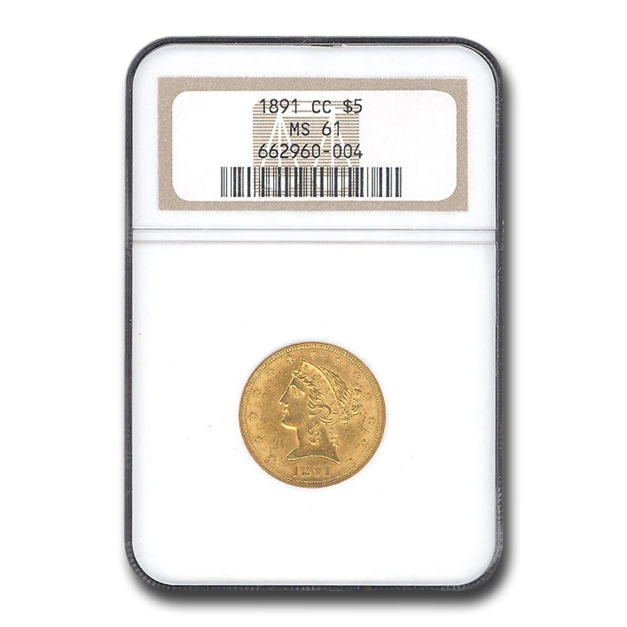 1891-CC $5 Liberty Gold Half Eagle MS-61 NGC