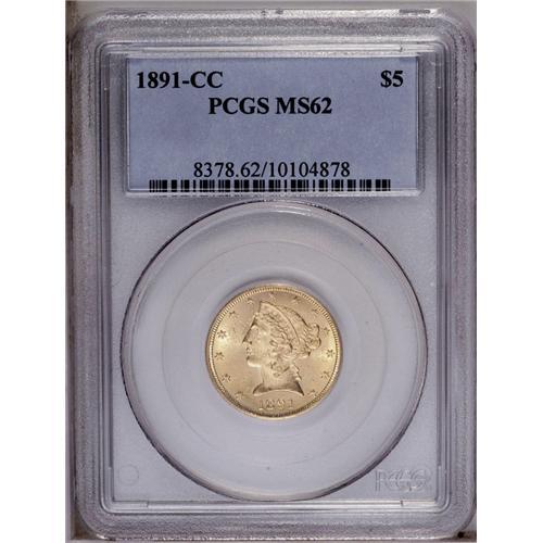 1891-CC $5 MS62 PCGS. Lustrous and nicely preserved, w
