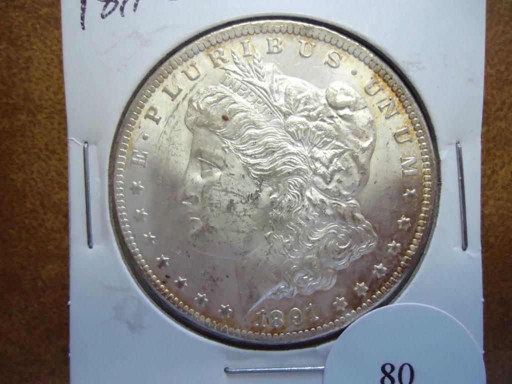 1891-CC MORGAN SILVER DOLLAR AU+