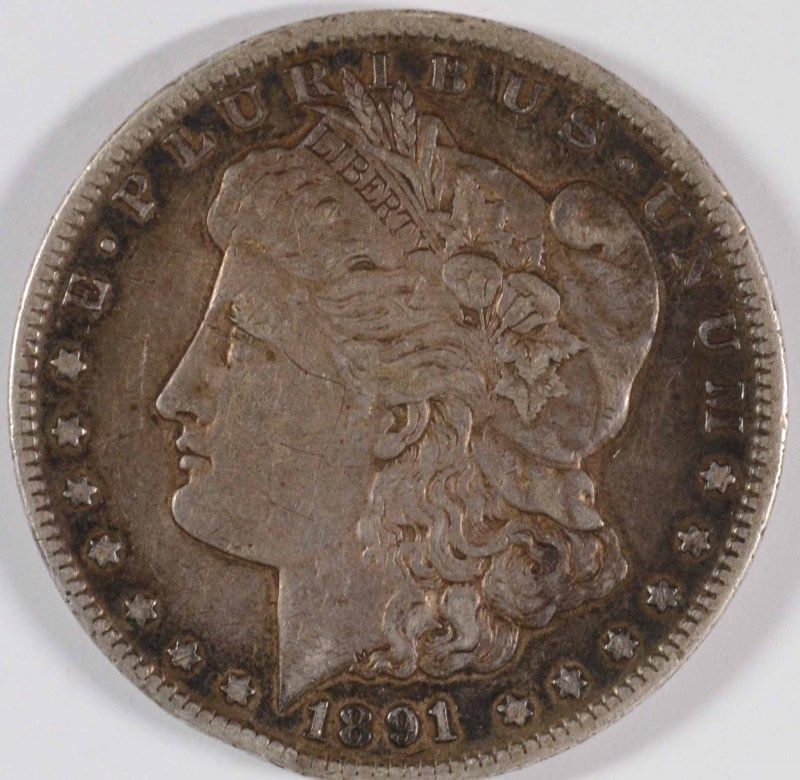 1891-CC MORGAN SILVER DOLLAR, SOLID XF ORIGINAL, VERY MINOR RIM BUMP