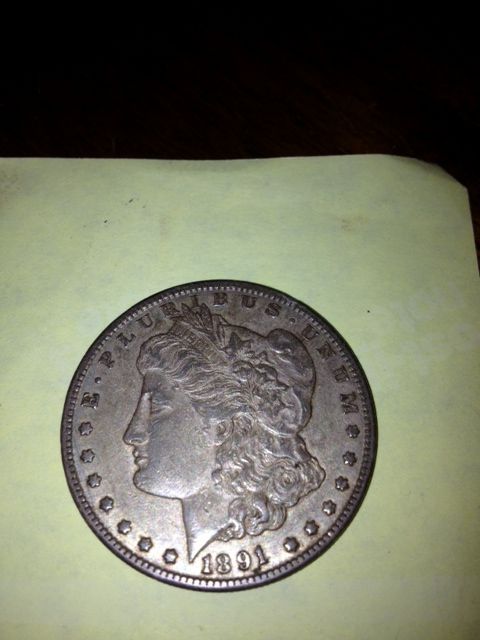 1891-CC MORGAN SILVER DOLLLAR, AU