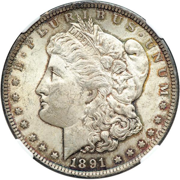 1891-CC. NGC graded MS-62 Vam 3, Spitting Eagle. Frosty with natural antique toning (PCGS # 7206) .