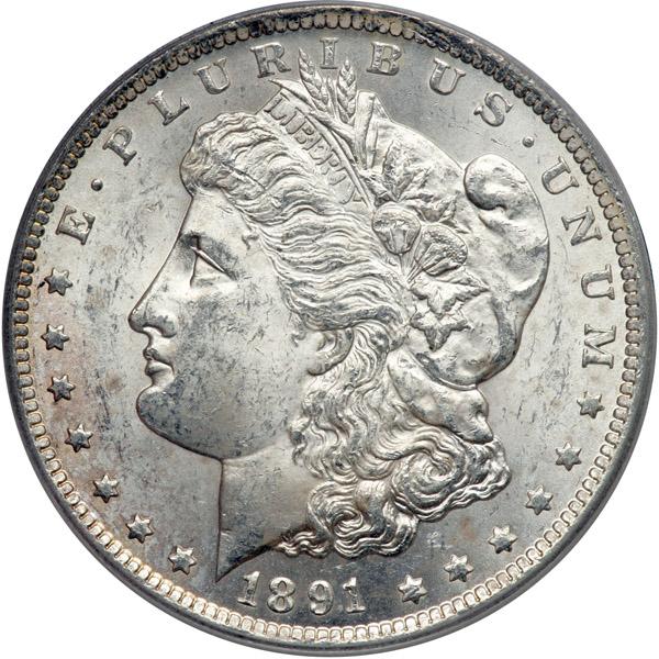 1891-CC Morgan Dollar. PCGS graded MS-62. Frosty and white (PCGS # 7206) .