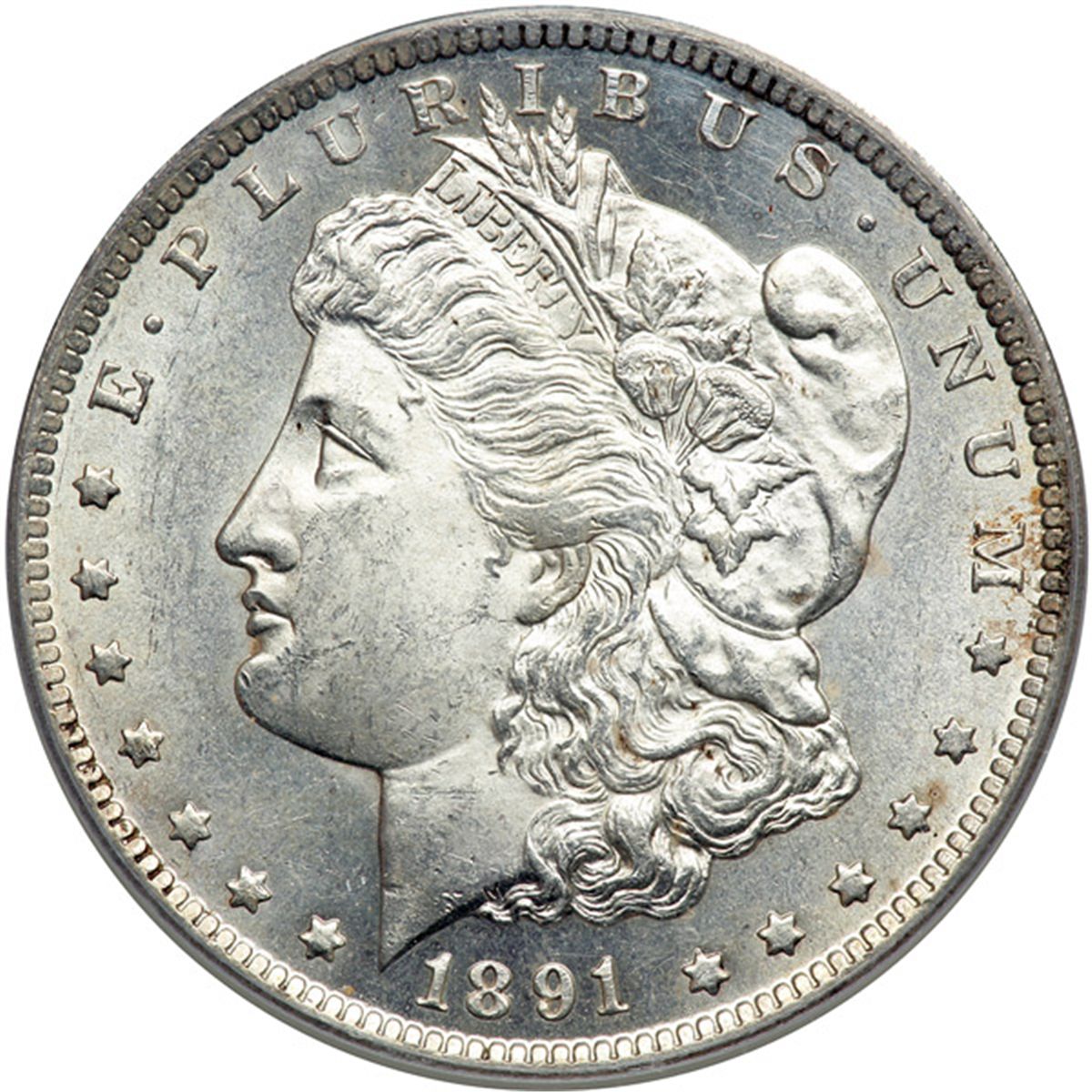 1891-CC Morgan Dollar. Our grade is MS60+ with light hairlines (PCGS # 7206) .