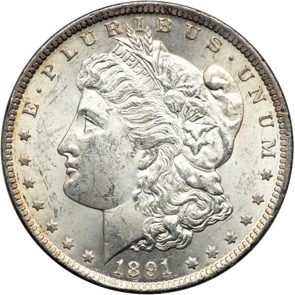 1891-CC Morgan Dollar. Reverse scratch. Our grade is MS62 with a reverse scratch (PCGS # 7206) .