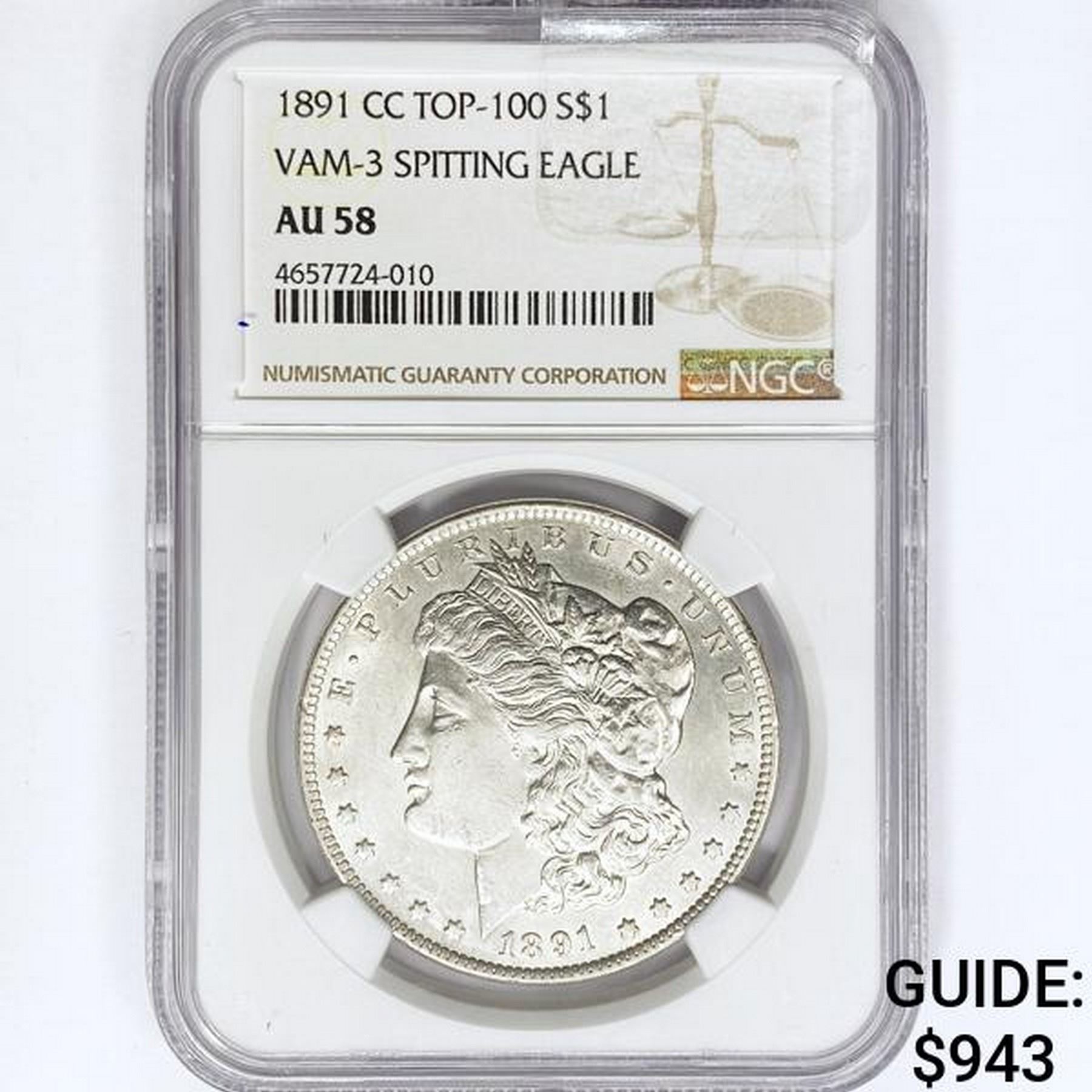 1891-CC Morgan Silver Dollar NGC AU58 Spit Eagle V