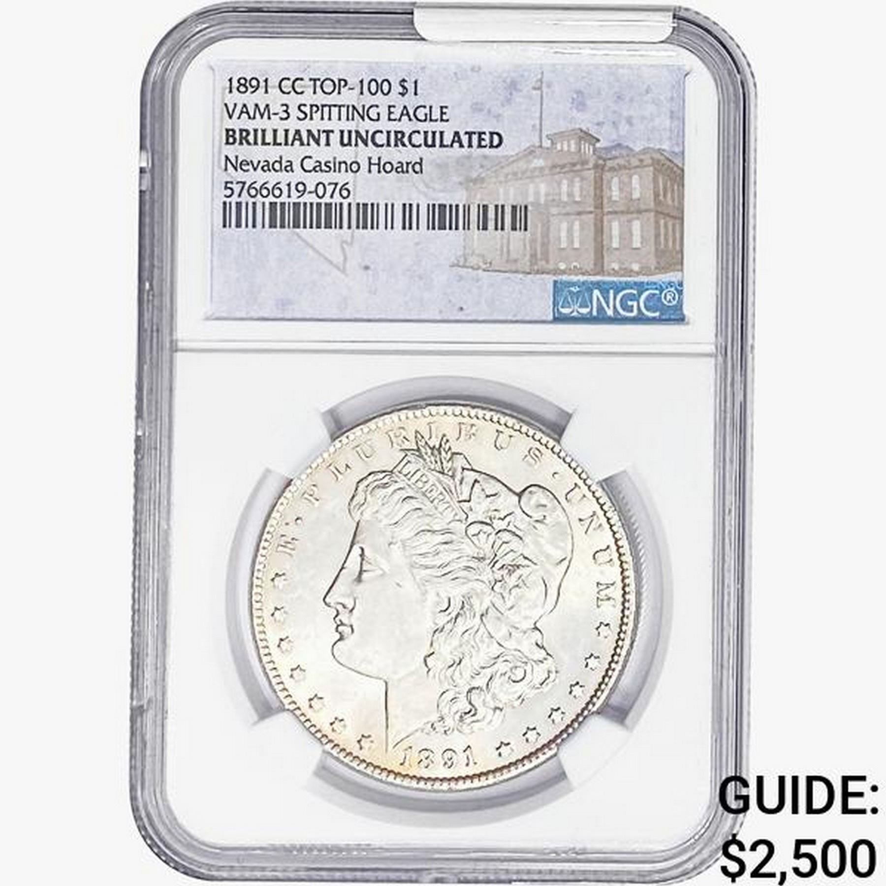 1891-CC Morgan Silver Dollar NGC BU Spit Eagle