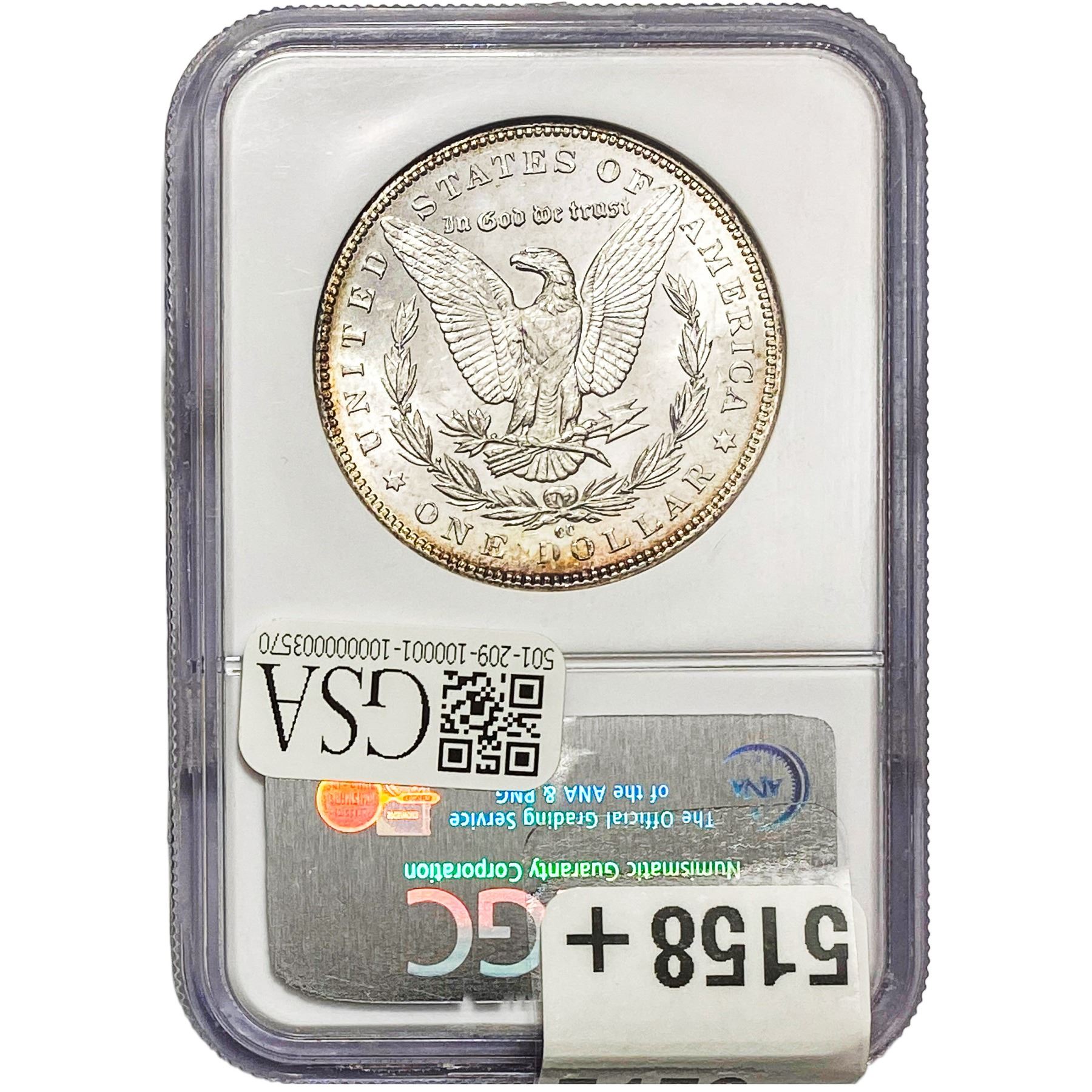 e. Coins sold referencing a third-party grading service are sold “AS IS” without any express or implied warranty, except for a guarantee by GSA that they are genuine. Removal or alteration of the holder, voids all of Bidder’s claims concerning that Product. Certain warranties may be available from the grading services and Bidders are referred to them for further details: Numismatic Guaranty Corporation (NGC), PO Box 4776, Sarasota, FL 34230, www.ngccoin.com/services/writtenguarantee.asp; Professional Coin Grading Services (PCGS), PO Box 9458, Newport Beach, CA 92658, www.pcgs.com/guarantee.html; ANACS, 6555 S. Kenton St., Ste. 303, Englewood, CO 80111; and Independent Coin Grading Co. (ICG), 7901 East Bellview, Ave., Suite 50, Englewood, CO 80111.