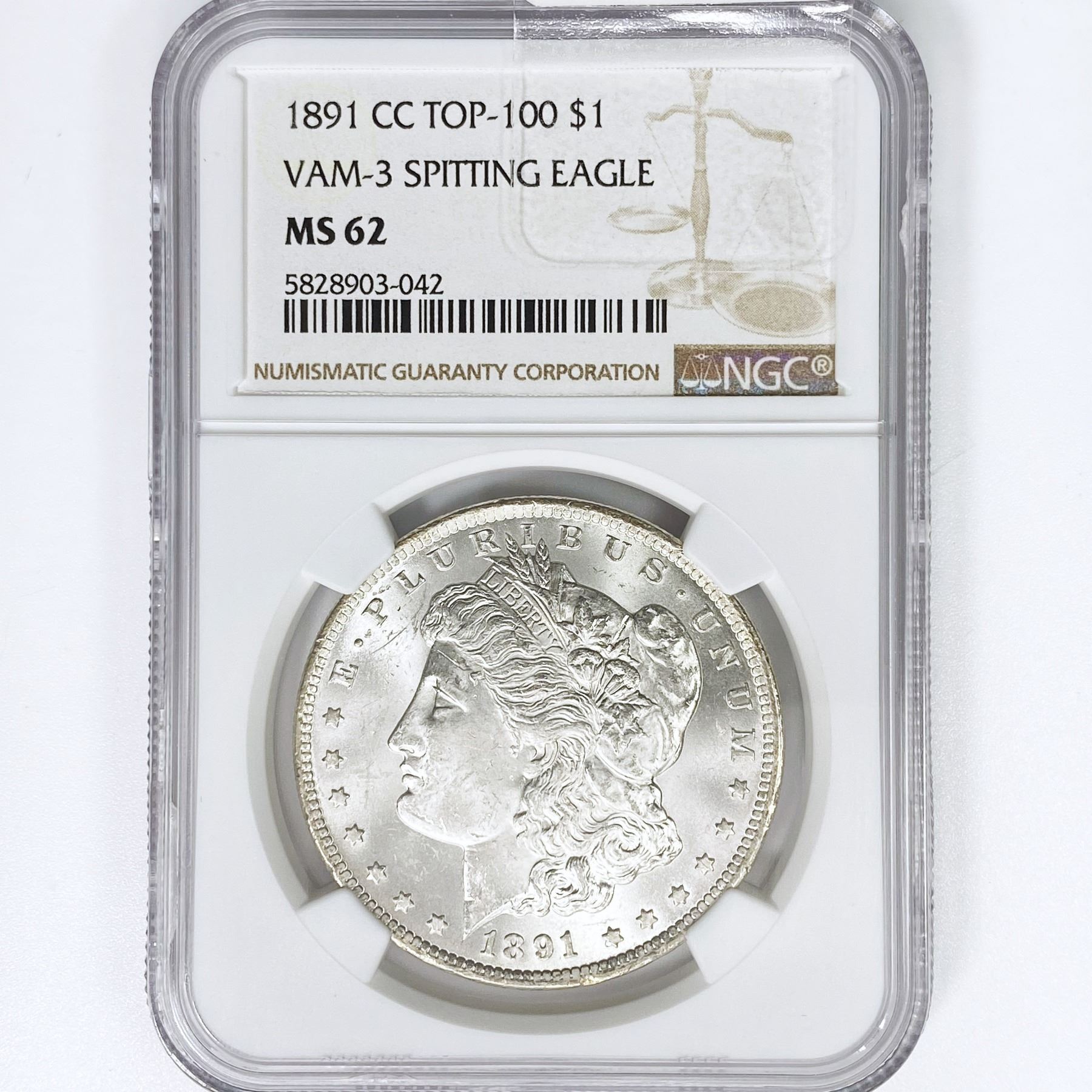 1891-CC Morgan Silver Dollar NGC MS62 VAM-3 Spit.