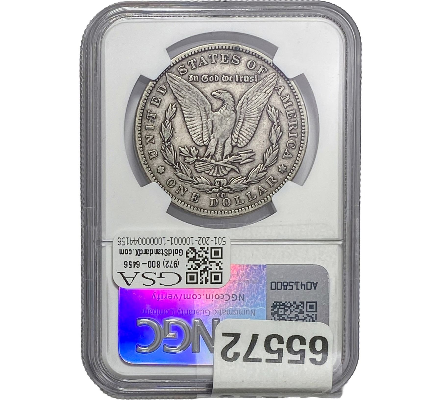 e. Coins sold referencing a third-party grading service are sold “AS IS” without any express or implied warranty, except for a guarantee by GSA that they are genuine. Removal or alteration of the holder, voids all of Bidder’s claims concerning that Product. Certain warranties may be available from the grading services and Bidders are referred to them for further details: Numismatic Guaranty Corporation (NGC), PO Box 4776, Sarasota, FL 34230, www.ngccoin.com/services/writtenguarantee.asp; Professional Coin Grading Services (PCGS), PO Box 9458, Newport Beach, CA 92658, www.pcgs.com/guarantee.html; ANACS, 6555 S. Kenton St., Ste. 303, Englewood, CO 80111; and Independent Coin Grading Co. (ICG), 7901 East Bellview, Ave., Suite 50, Englewood, CO 80111.