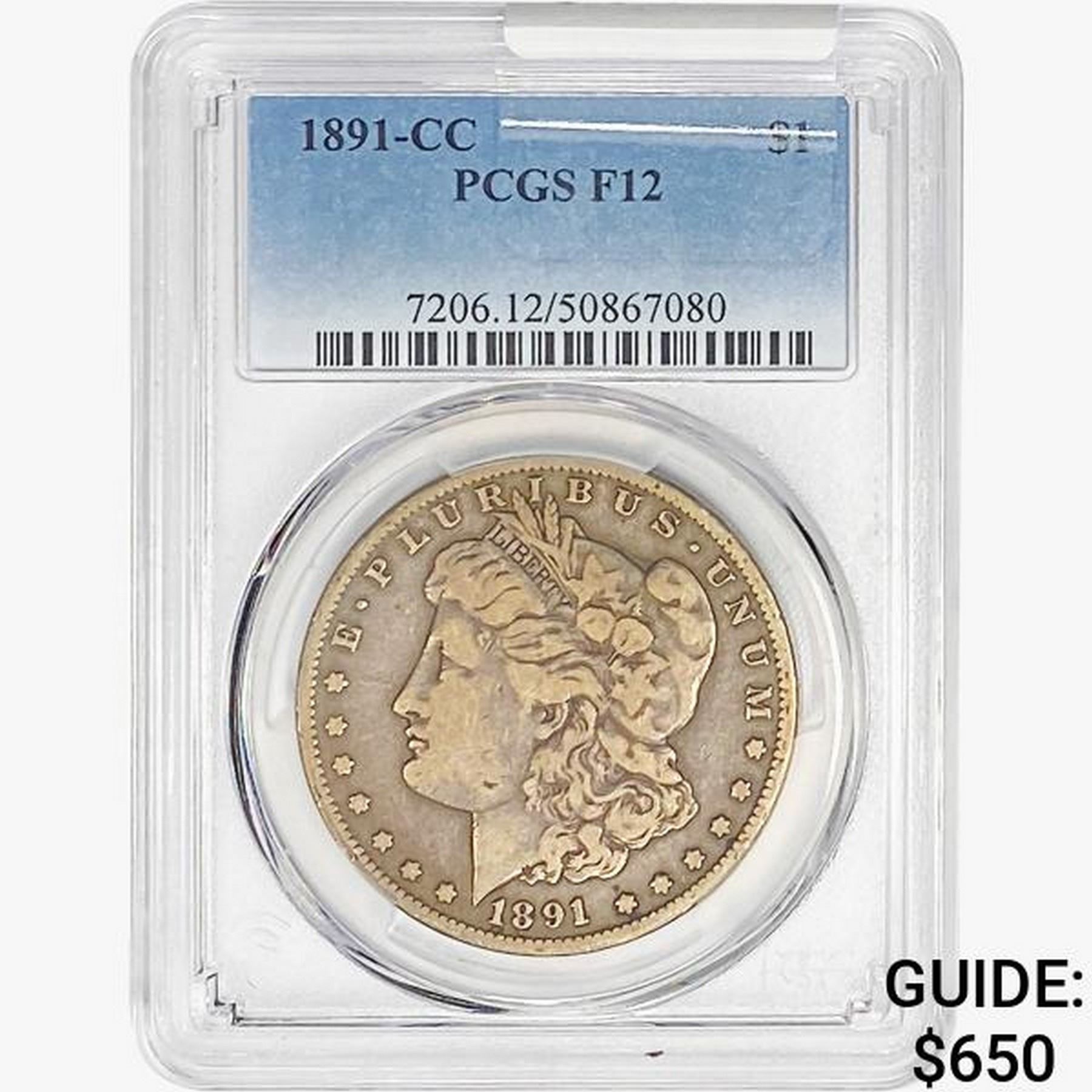 1891-CC Morgan Silver Dollar PCGS F12