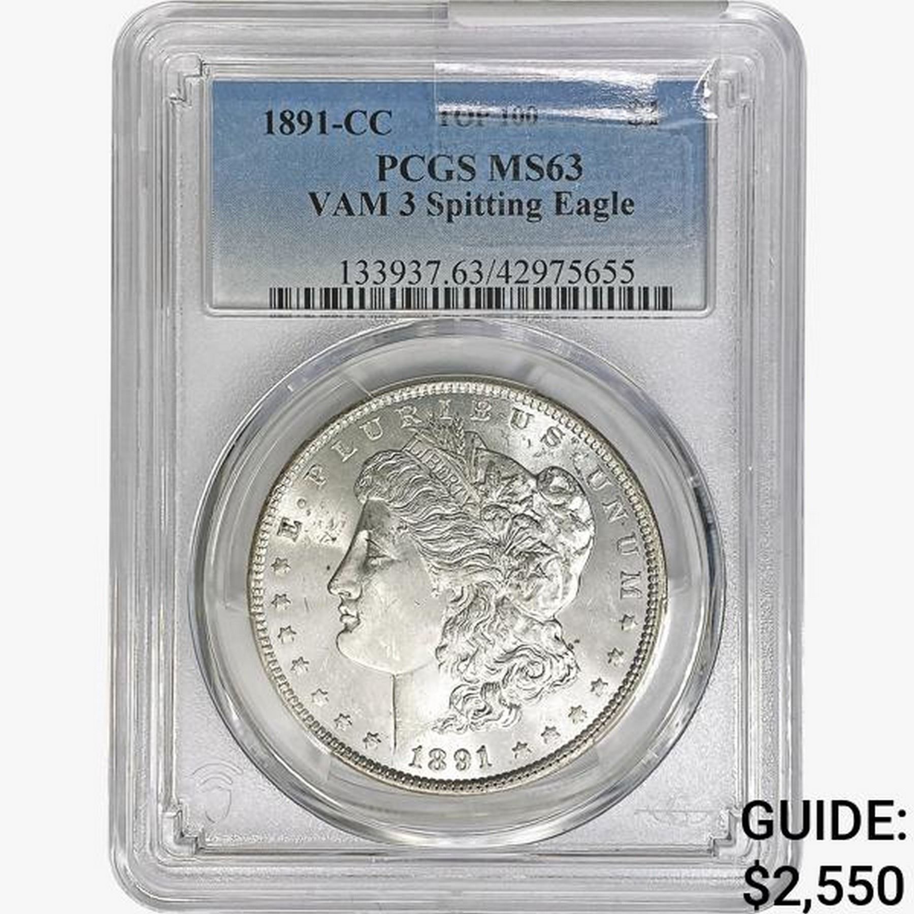 1891-CC Morgan Silver Dollar PCGS MS63 VAM-3 Spit.
