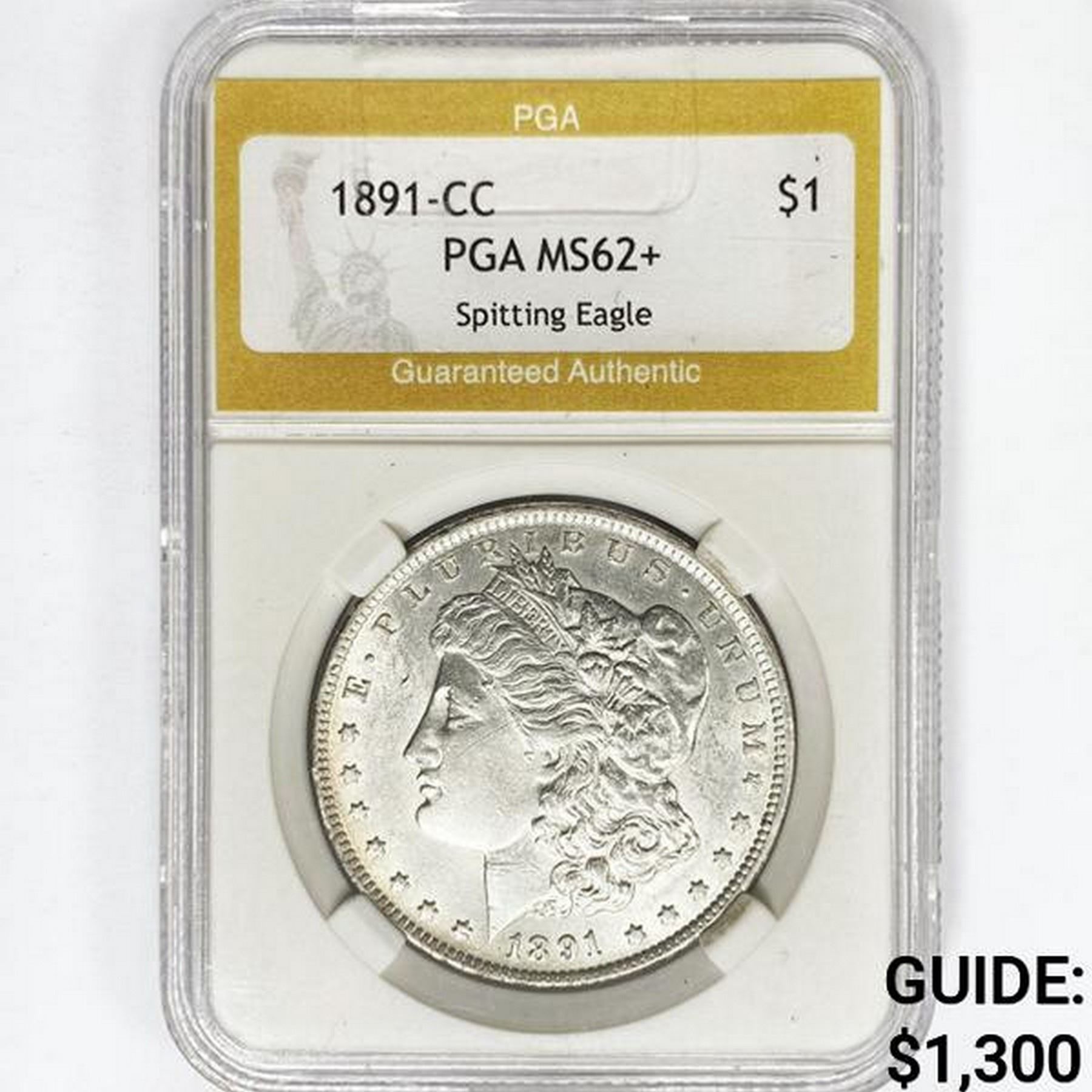 1891-CC Morgan Silver Dollar PGA MS62+ Spitting Ea
