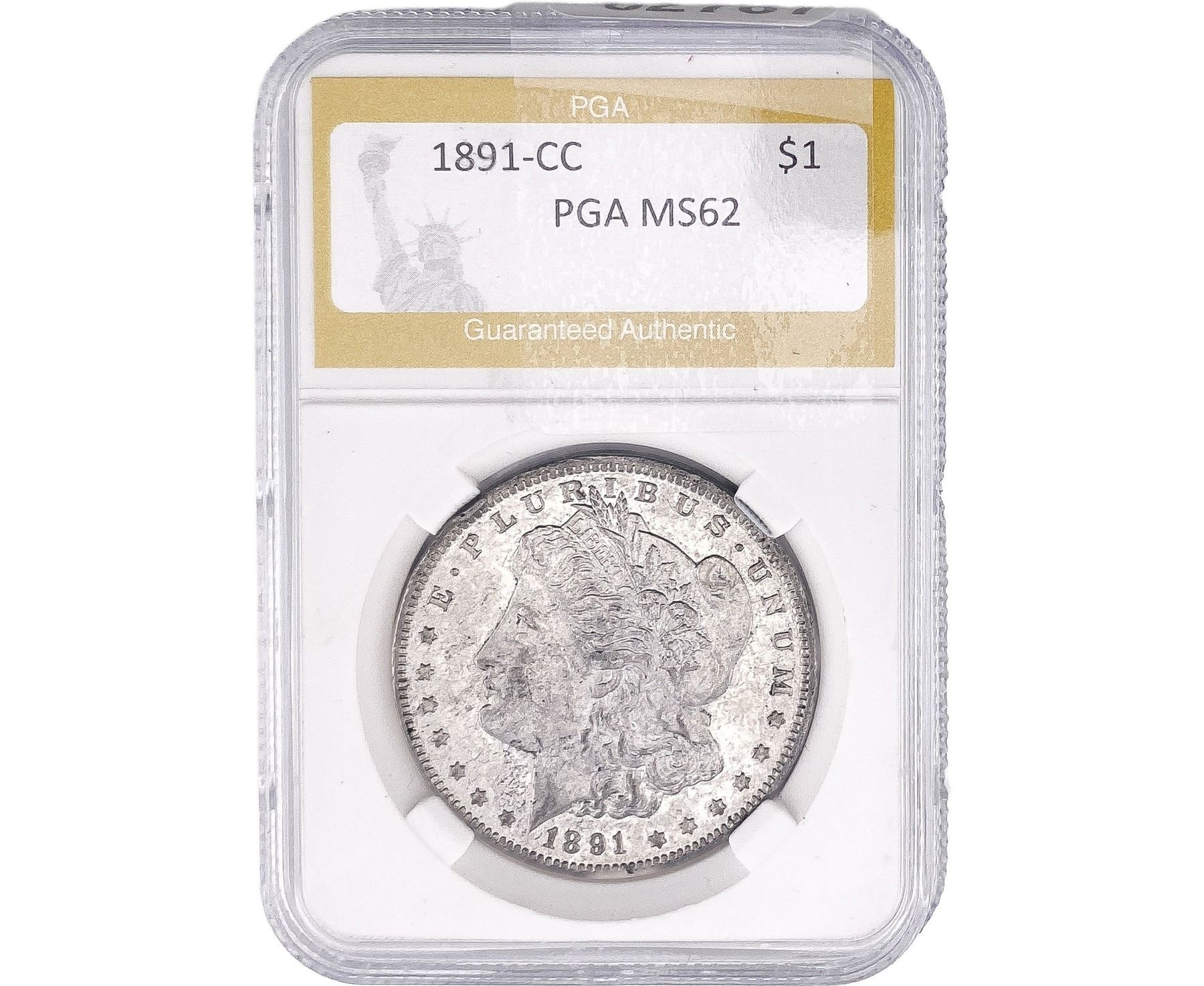 COINS AND CURRENCY LISTED IN GSA’S CATALOG AS GRADED AND ENCAPSULATED BY PCGS, NGC, ANACS, ICG, PCGS CURRENCY, PMG, PCGS BANKNOTE GRADING, CMC OR ANY OTHER THIRD-PARTY GRADING SERVICE ARE LIKEWISE SOLD “AS-IS” EXCEPT AS EXPRESSLY SET FORTH HEREIN. ALL THIRD-PARTY GRADING SERVICE GUARANTEES, INCLUDING AUTHENTICITY, ARE THE SOLE RESPONSIBILITY OF THE THIRD-PARTY GRADING SERVICE AND NOT WARRANTIES OR GUARANTEES OF GSA. BIDDERS SHOULD CONTACT THESE THIRD-PARTY GRADING SERVICES DIRECTLY WITH RESPECT TO ANY CLAIMS OR QUESTIONS THEY MAY HAVE CONCERNING THEIR GUARANTEES AND WARRANTIES. BIDDERS ACKNOWLEDGE AND AGREE THAT AUCTIONEER IS NOT BOUND BY OR LIABLE FOR ANY OPINION OR CERTIFICATION BY ANY THIRD-PARTY GRADING SERVICE. REMOVAL OF A PRODUCT FROM ITS PROTECTIVE CASING OR HOLDER OR ALTERATION OF ANY COIN HOLDER WAIVES ALL RIGHTS CONCERNING THE PRODUCT CONTAINED THEREIN.