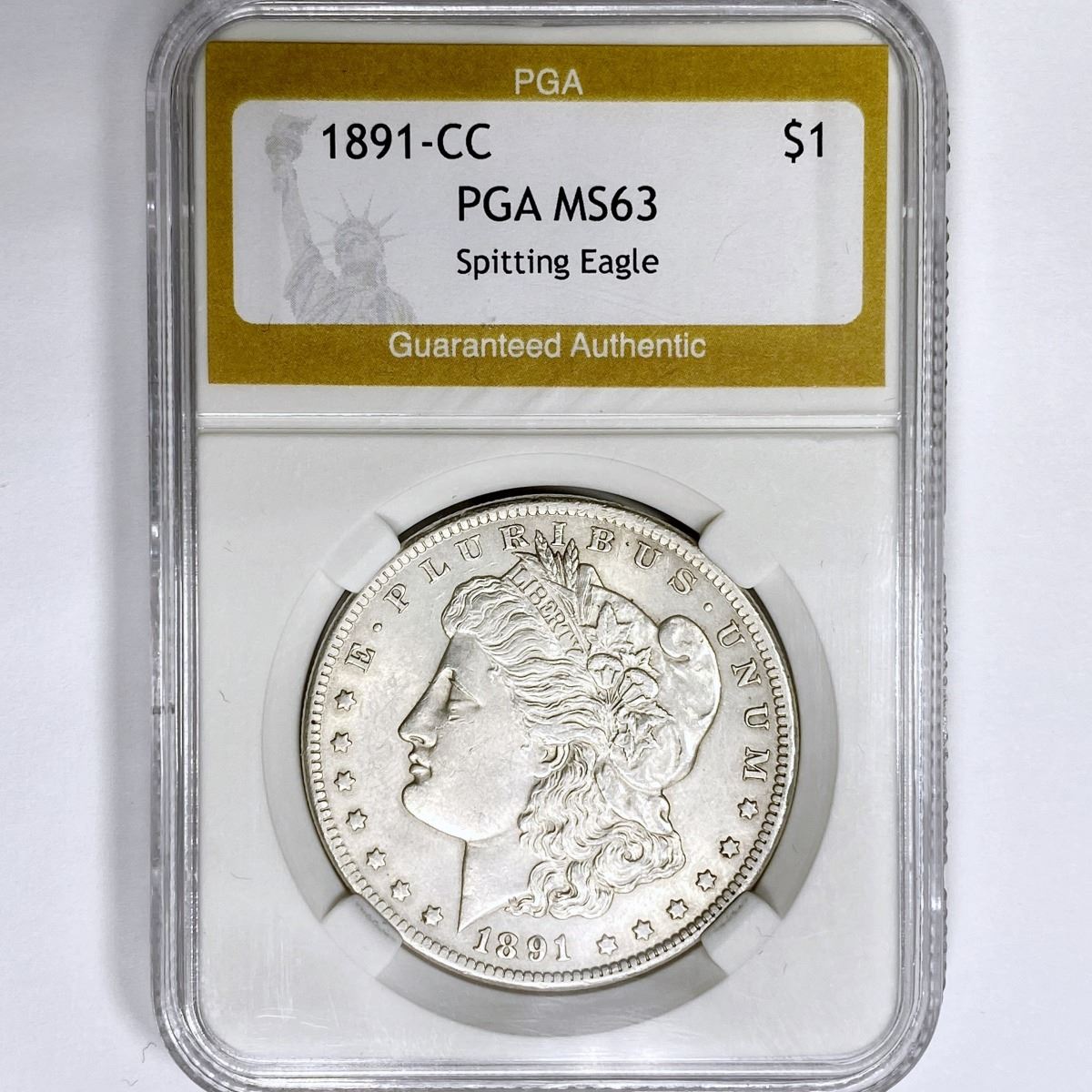 1891-CC Morgan Silver Dollar PGA-MS63 Spitting