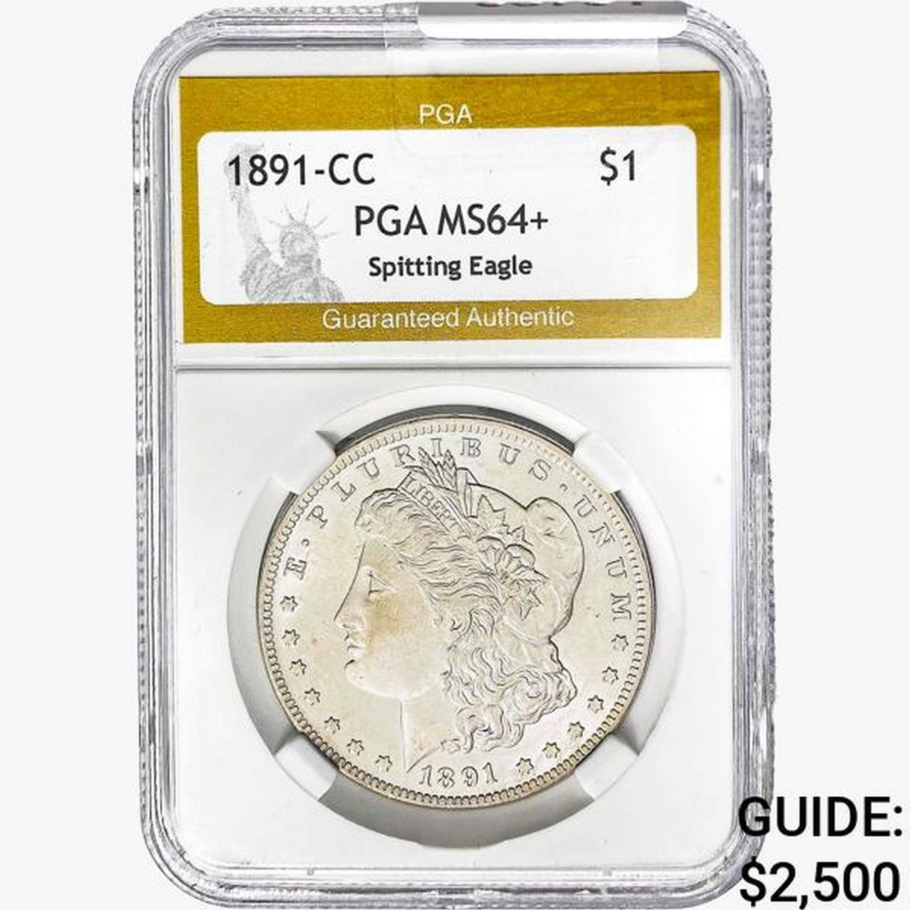 1891-CC Morgan Silver Dollar PGA MS64+ Spit Eagle