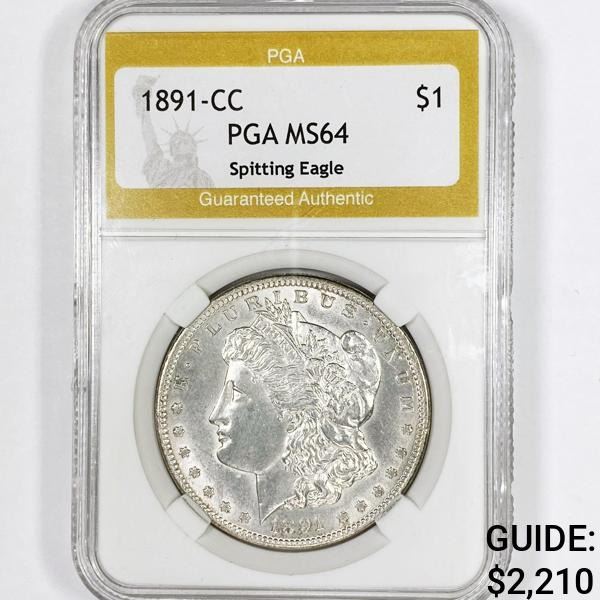 1891-CC Morgan Silver Dollar PGA-MS64 Spitting