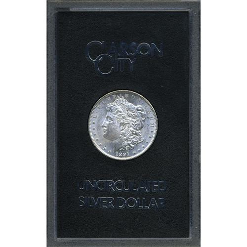 <B>1891-CC<img border='0' src='http://www.heritagecoins.com/images/star.gif' width=10 height=10>$1> MS60 Uncertified.</B></I> VAM-3. A Top 100 Variety. A lustrous, lightly toned, and boldly struck representative. The obverse is typically abraded, and the reverse is comparatively clean.