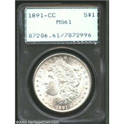 1891-CC S$1 MS61 PCGS. Brilliant and lustrous with numerous small to medium sized abrasions over the