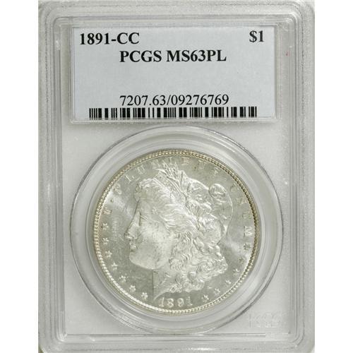 1891-CC S$1 MS63 Prooflike PCGS. Nearly untoned surfac
