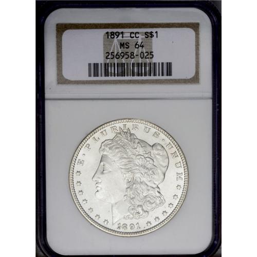 1891-CC S$1 MS64 NGC. Bright, satiny mint luster with