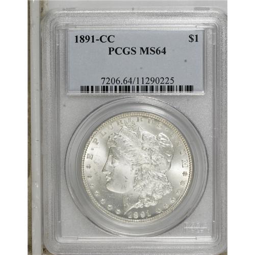 <B>1891-CC S$1 MS64 PCGS.</B></I> Exactingly struck with rich, creamy luster. The lightly frosted devices and the fields host various luster grazes and a handful of marks that account for the grade.<BR><BR><b>Shipping:</b> Coins & Currency (<a target="_blank" href="http://www.heritageauctions.com/common/shipping.php">view shipping information</a>)