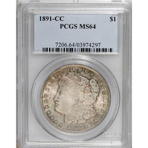 1891-CC S$1 MS64 PCGS. Golden-brown and jade-green end