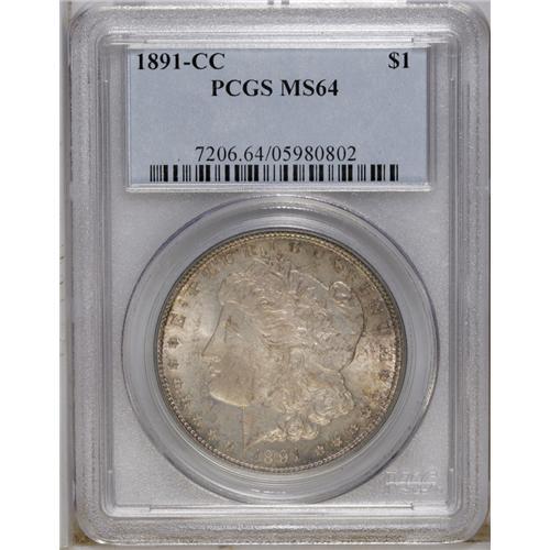 1891-CC S$1 MS64 PCGS. This solidly struck dollar is s