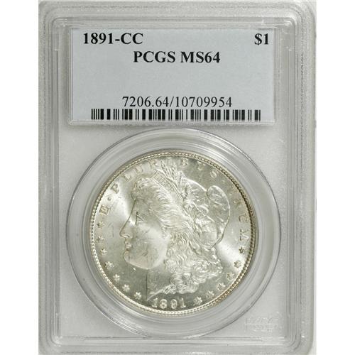 1891-CC S$1 MS64 PCGS. This thoroughly lustrous Choice