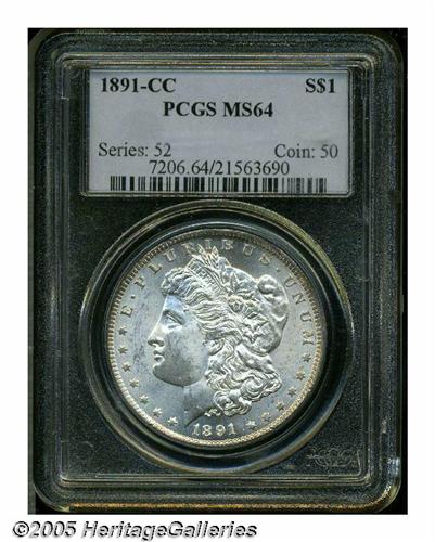 <B>1891-CC<S$1> MS64 PCGS.</B></I> VAM-3. A Top 100 Variety. A nice example of this reasonably common VAM. Light rose color washes over the surfaces, heaviest at the peripheries. Though lightly scuffed, free of the serious marks often encountered.