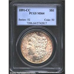 1891-CC S$1 MS64 PCGS. VAM-3. Top 100 Variety. The so-called "Spitting Eagle." A lustrous and nicely
