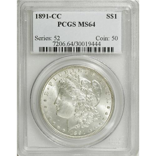 1891-CC S$1 MS64 PCGS. VAM-6. The right-side reverse l