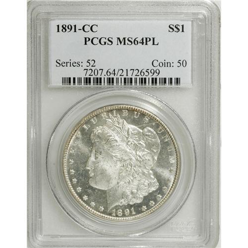 <B>1891-CC S$1 MS64 Prooflike PCGS.</B></I> A flashy and meticulously struck piece whose lightly toned surfaces are only moderately abraded. Carson City dollars are hugely popular for their link to the old West, and their availability in Uncirculated grades.<BR><BR><b>Shipping:</b> Coins & Currency (<a target="_blank" href="http://www.heritageauctions.com/common/shipping.php">view shipping information</a>)