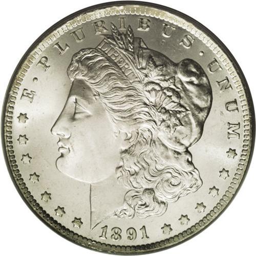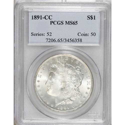 <B>1891-CC S$1 MS65 PCGS.</B></I> Seemingly a candidate for a higher grade, the surfaces show smooth mint frost and a high degree of eye appeal overall. Virtually unblemished. The striking details are strong on each side, and both obverse and reverse are brilliant. Faint clash marks show on the reverse.<BR><BR><b>Shipping:</b> Coins & Currency (<a target="_blank" href="http://www.heritageauctions.com/common/shipping.php">view shipping information</a>)