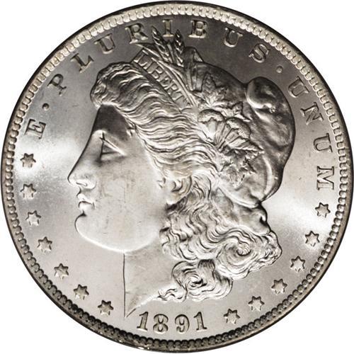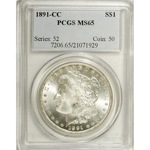 <B>1891-CC S$1 MS65 PCGS.</B></I> VAM-3. A Top 100 Variety. Delicate gold patina endows this lustrous and sharply struck Carson City Gem. A thin dash of dark gray toning on the right eagle's wing is of little concern, and the preservation is exemplary. VAM-3 is best known as the "Spitting Eagle" because of the die gouge beneath the beak, but the VAM also features a repunched mintmark.<BR><BR><b>Shipping:</b> Coins & Currency (<a target="_blank" href="http://www.heritageauctions.com/common/shipping.php">view shipping information</a>)