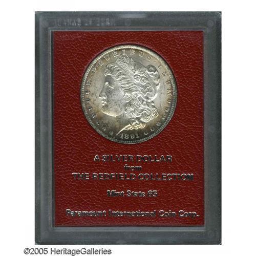 <B>1891-CC<S$1> Morgan Dollar MS65 Paramount International (MS62).</B></I> Ex: Redfield. VAM-3. A Top 100 Variety. A "Spitting Eagle" Redfield Dollar, attractively toned in peripheral russet and sea-green colors. This nicely struck example has the expected light facial marks, but the eye appeal is nonetheless considerable.