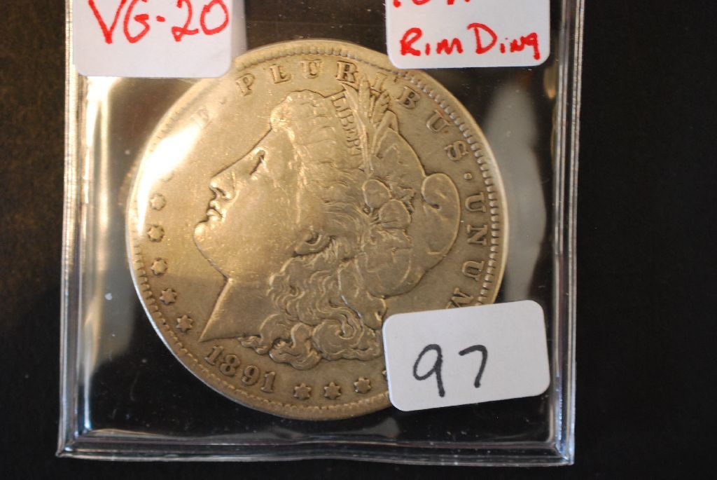 1891-CC Silver Morgan $1; VG20; Rim Ding; EST. $100-125