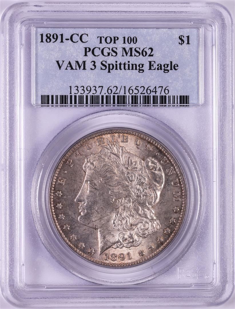 1891-CC VAM-3 Spitting Eagle $1 Morgan Silver Dollar Coin PCGS MS62 Top 100