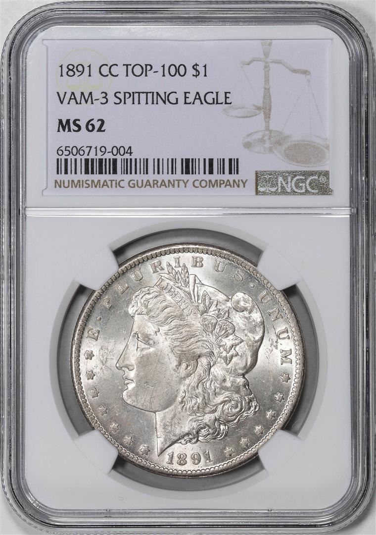 1891-CC VAM-3 Spitting Eagle Top-100 $1 Morgan Silver Dollar Coin NGC MS62