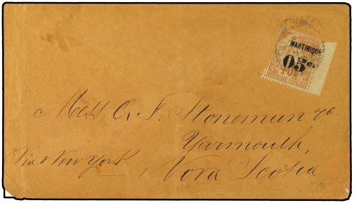 1891 Envelope to Yarmouth, Nova Scotia, franked ´05c´ on 40c. "Commerce" tied by indistinct date stamp. Routed via New York. Rare destination.