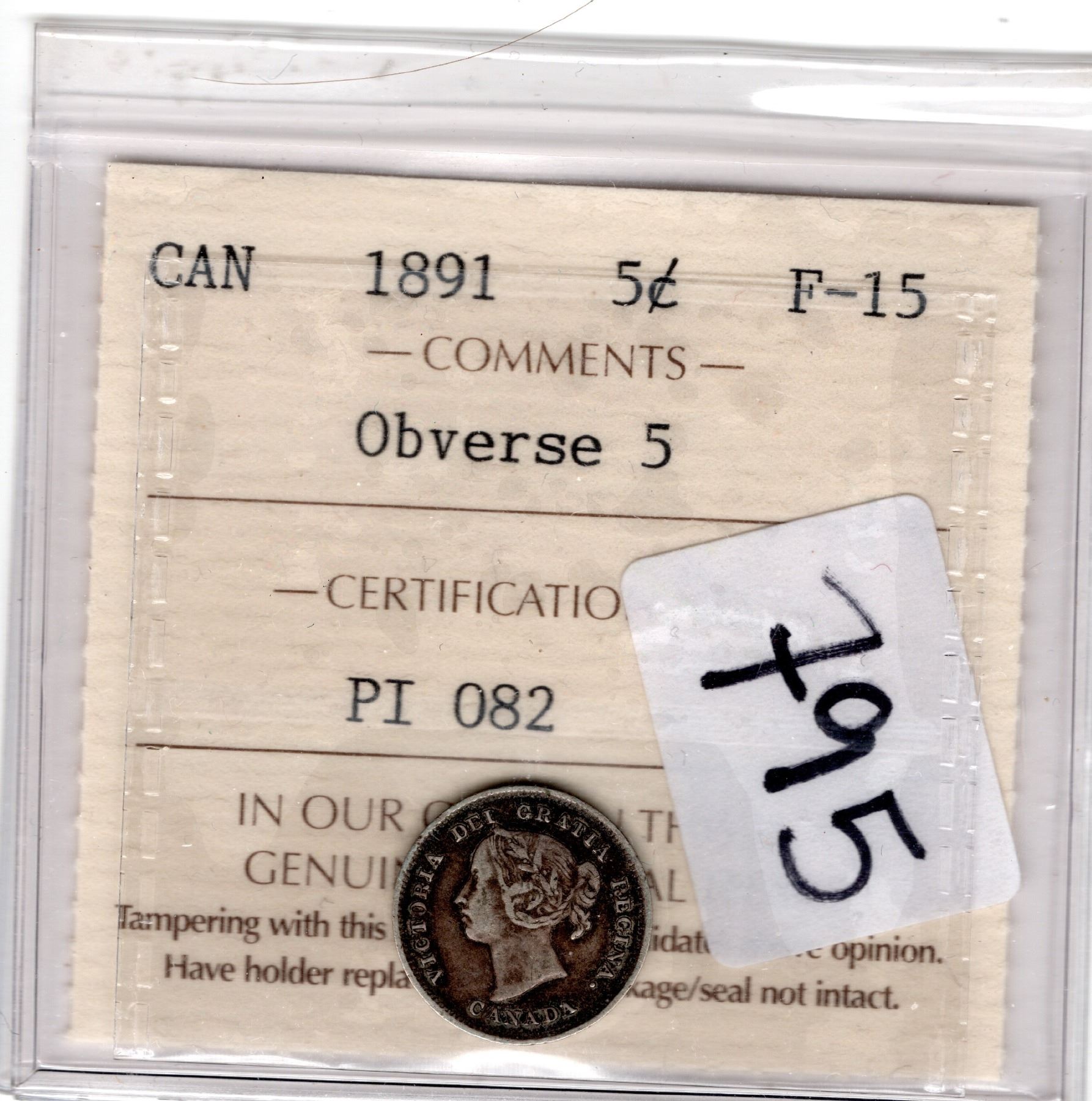 1891 FIVE CENT, F15 OBVERSE 5, ICCS