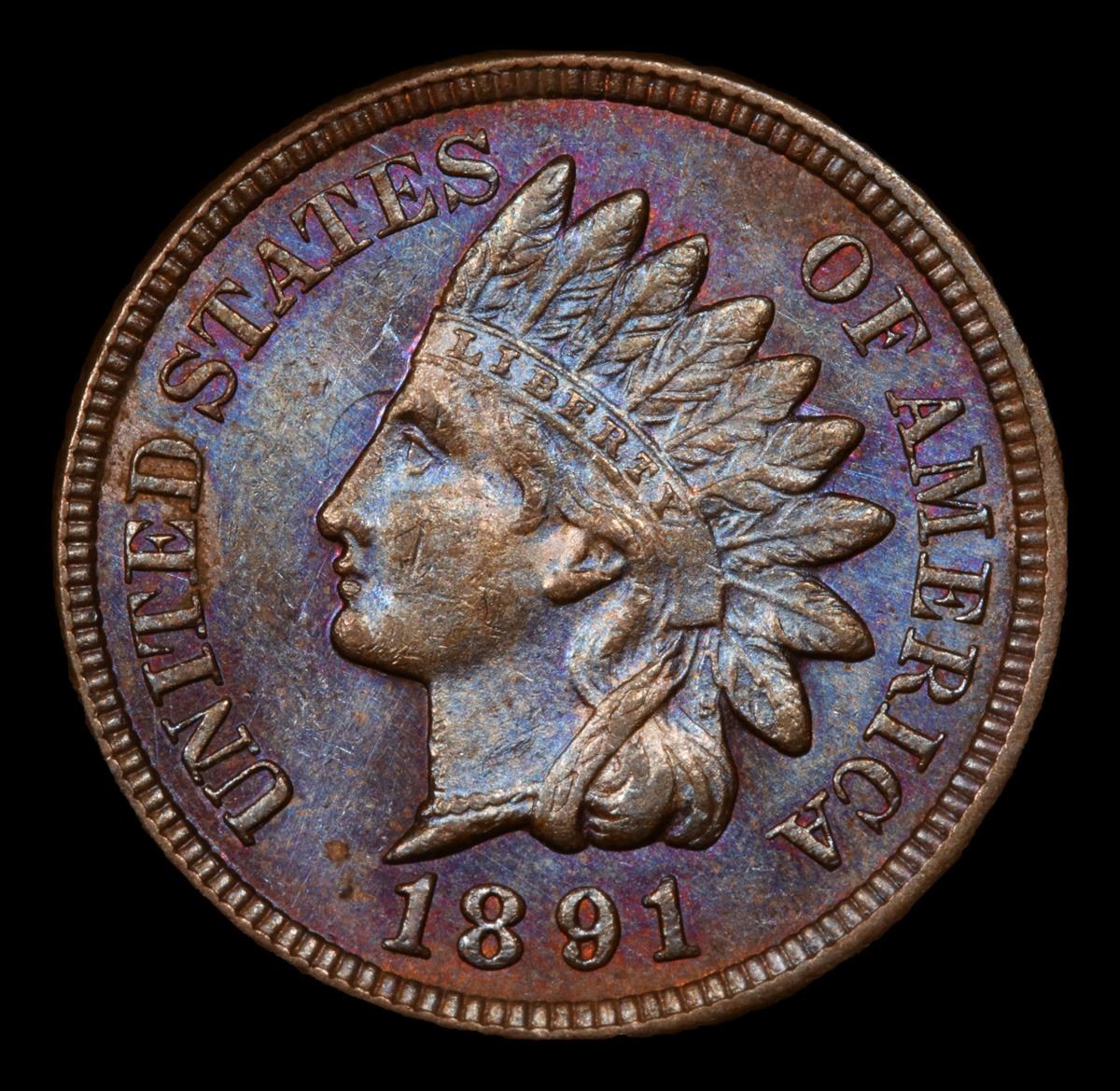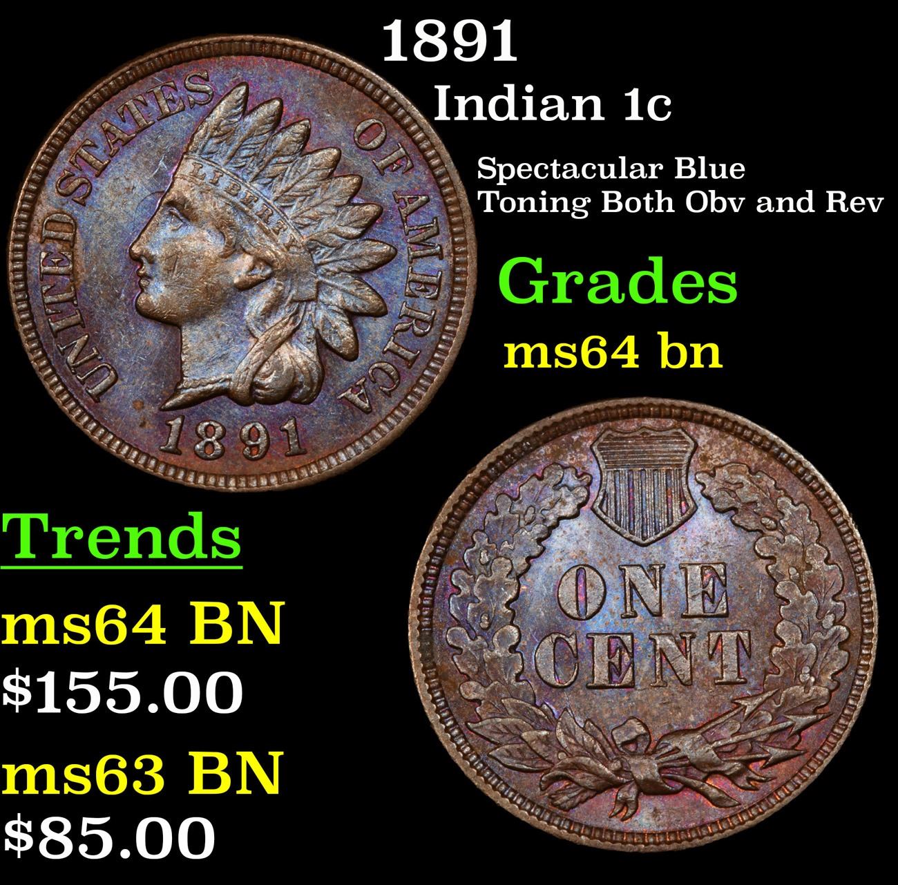1891 Spectacular Blue Toning Both Obv and Rev . Indian Cent 1c Grades Choice Unc BN.