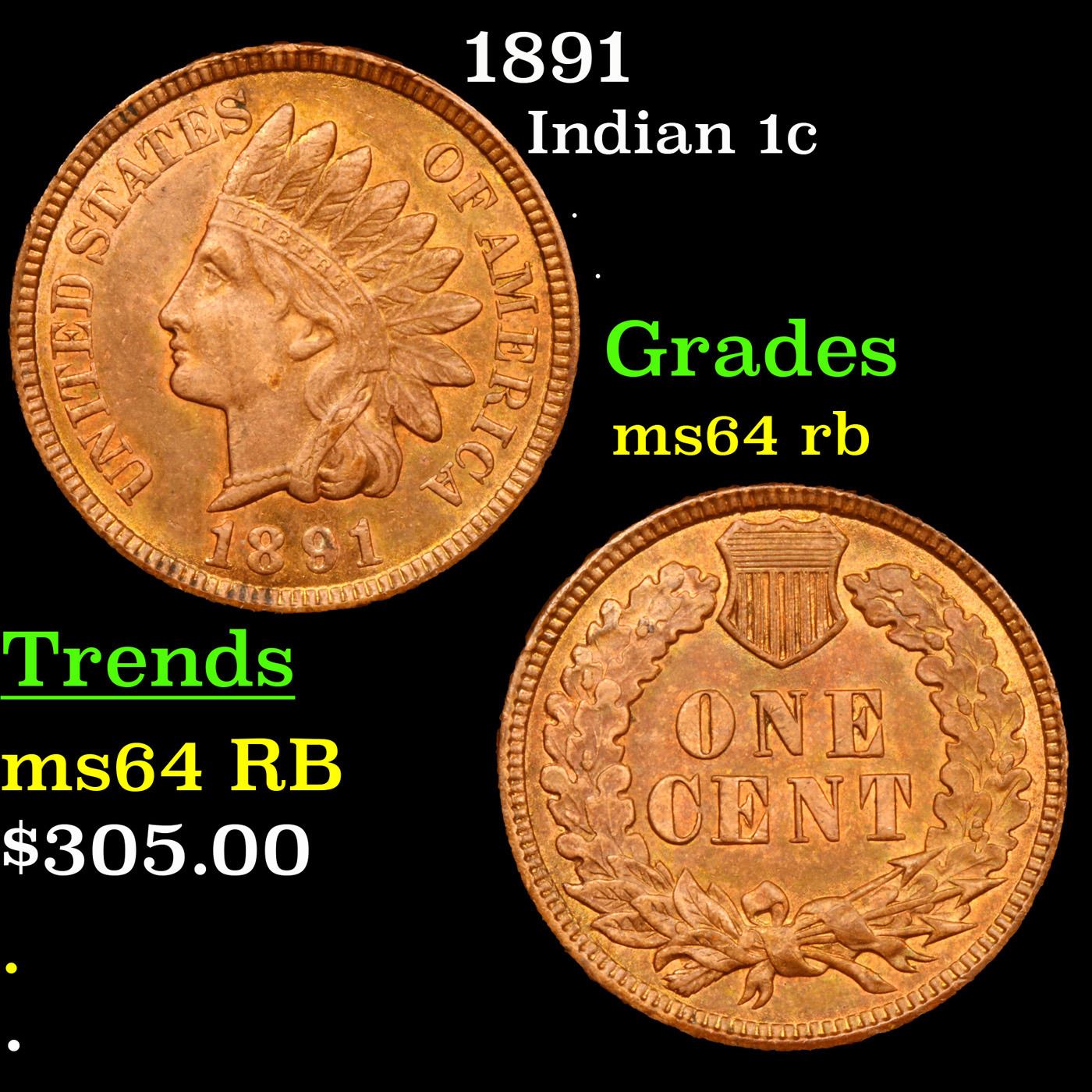 1891 Indian Cent 1c Grades Choice Unc RB.