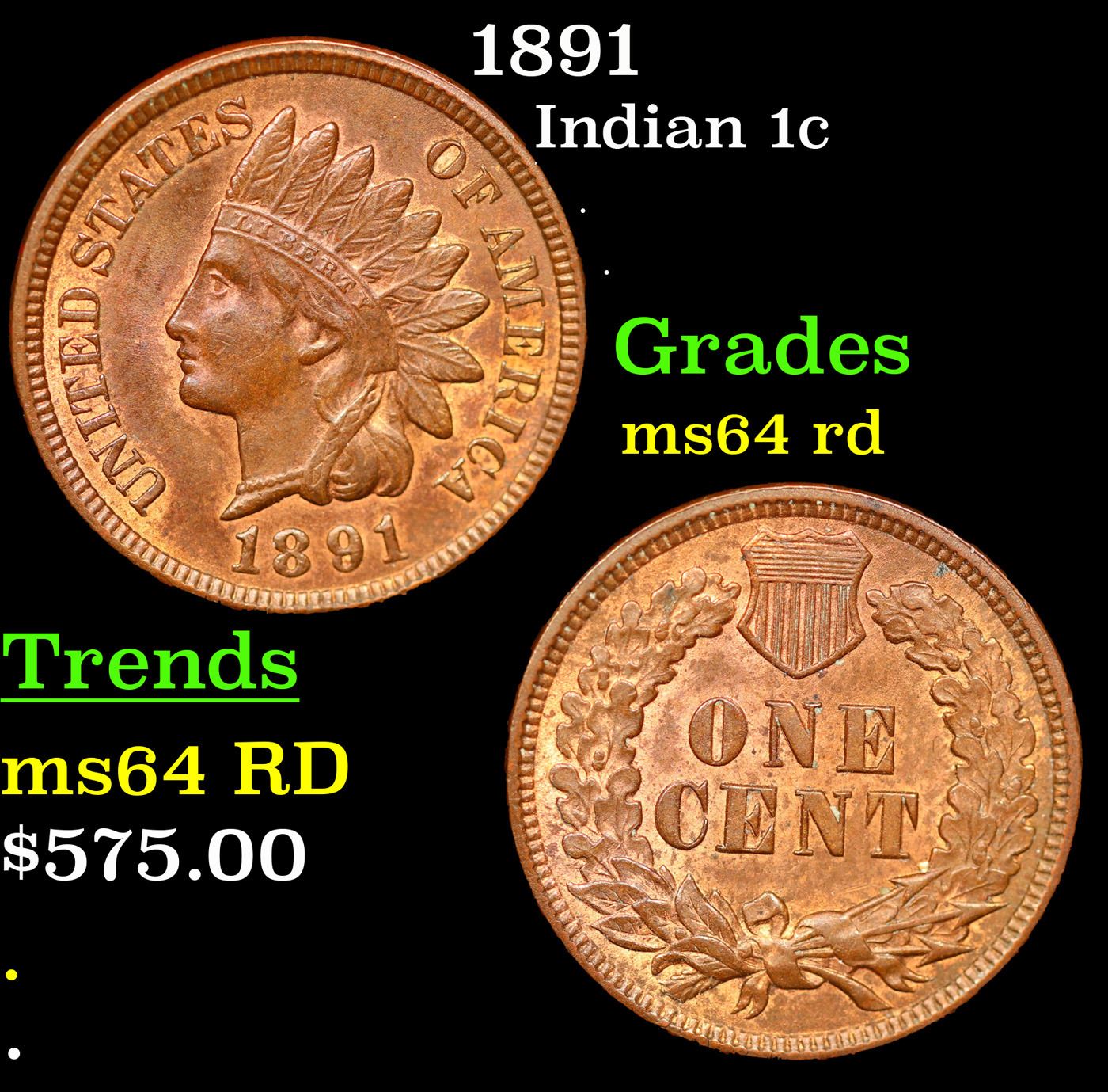 1891 Indian Cent 1c Grades Choice Unc RD.