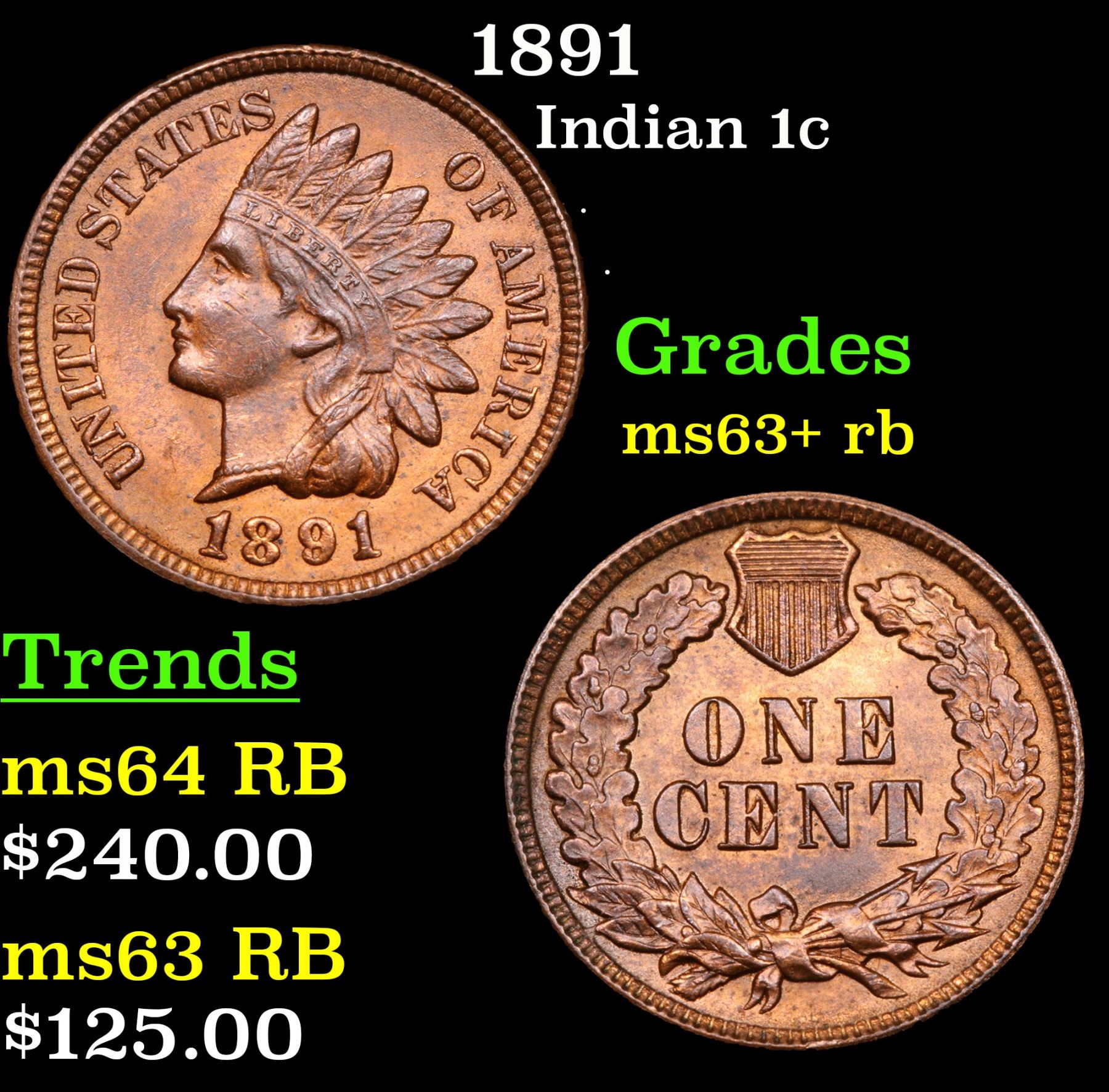 1891 . . Indian Cent 1c Grades Select+ Unc RB.