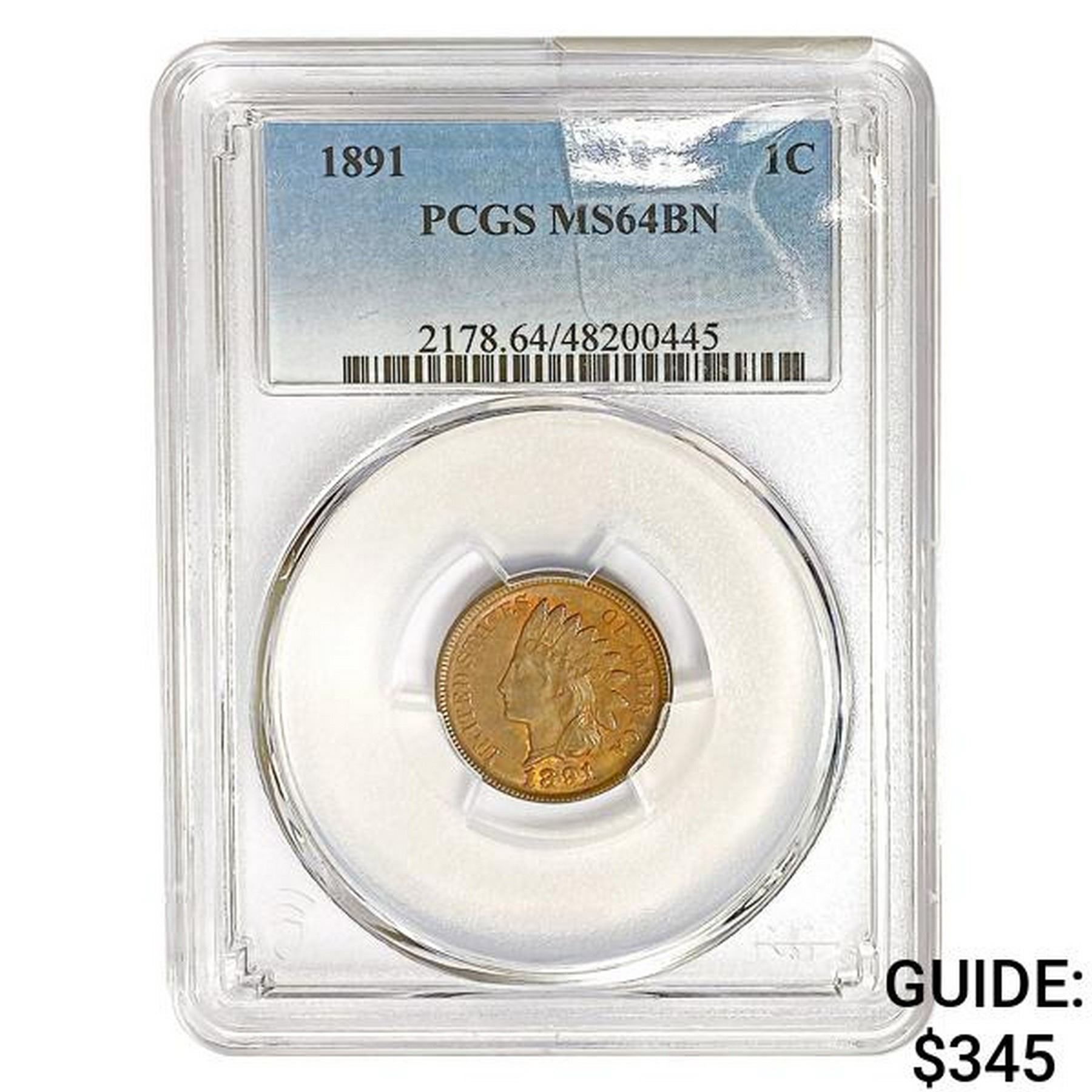 1891 Indian Head Cent PCGS MS64 BN