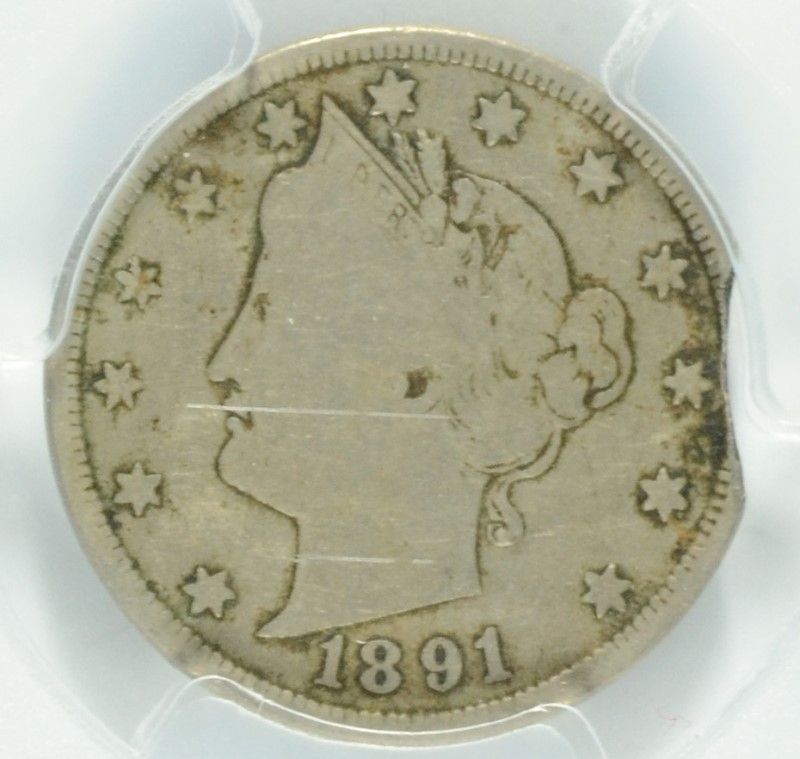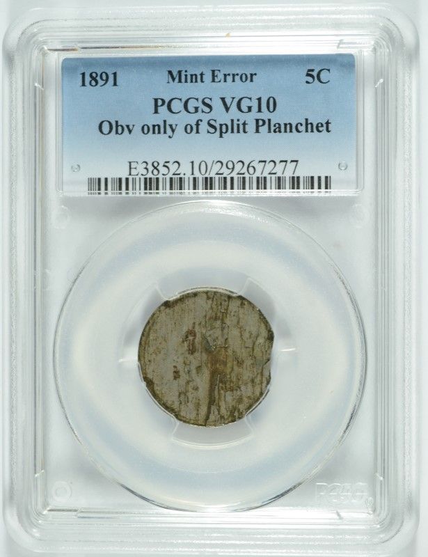 1891 LIBERTY NICKEL, PCGS VG-10 MINT ERROR, OBV. ONLY OF SPLIT PLANCHET