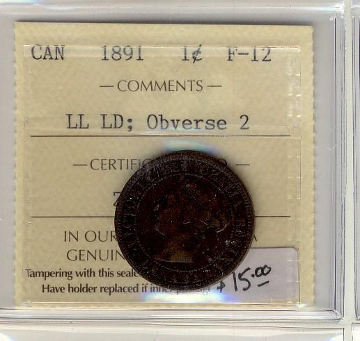 1891 LL LD Obv 2 1¢ ICCS F12