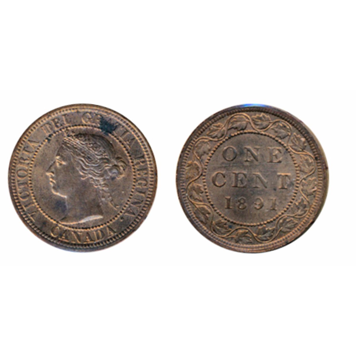 1891. Large Date, Large Leaves. ICCS Mint State-63. Red-Brown. 50%/40% luster on obverse/reverse. Spot on obverse.