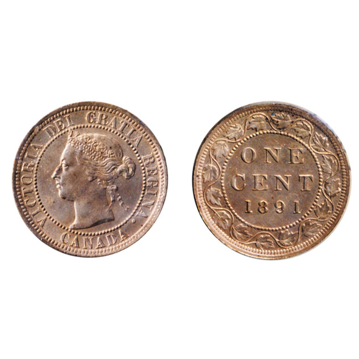 1891. Large Date, Large Leaves. Obverse port. #2. ICCS Mint State-63. Red. With 85% original red luster.